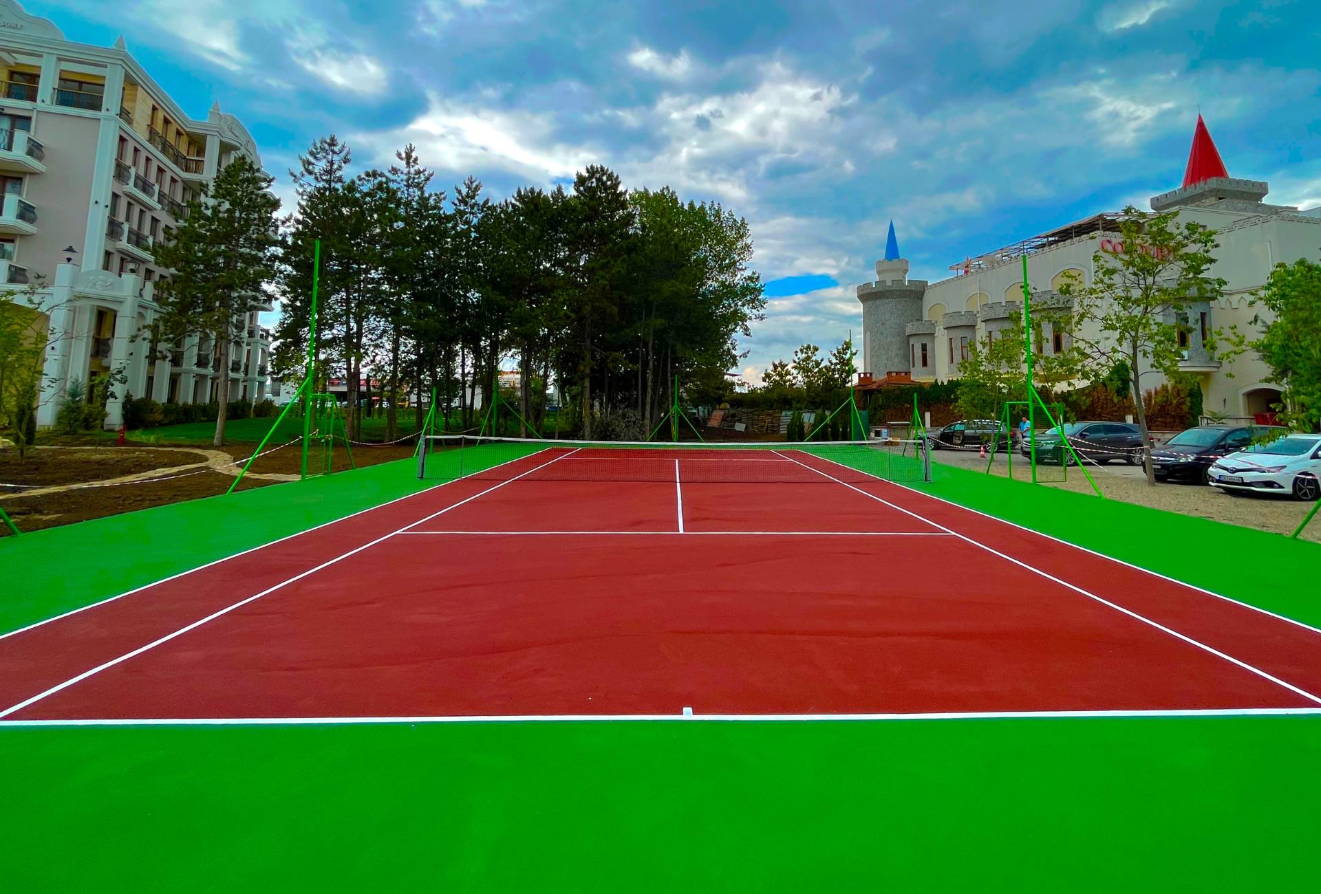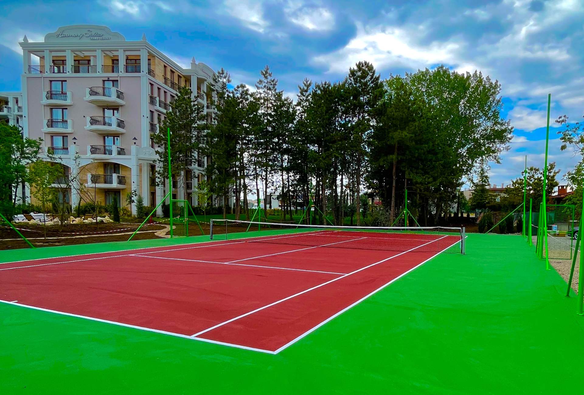 Местоположение: Хотелски Комплекс Harmony Suites, гр. Слънчев Бряг, България Дата на изграждане: Юни 2023 г. Вид настилка: Акрил Описание на проекта: Изграждане на 1 хард тенис корт