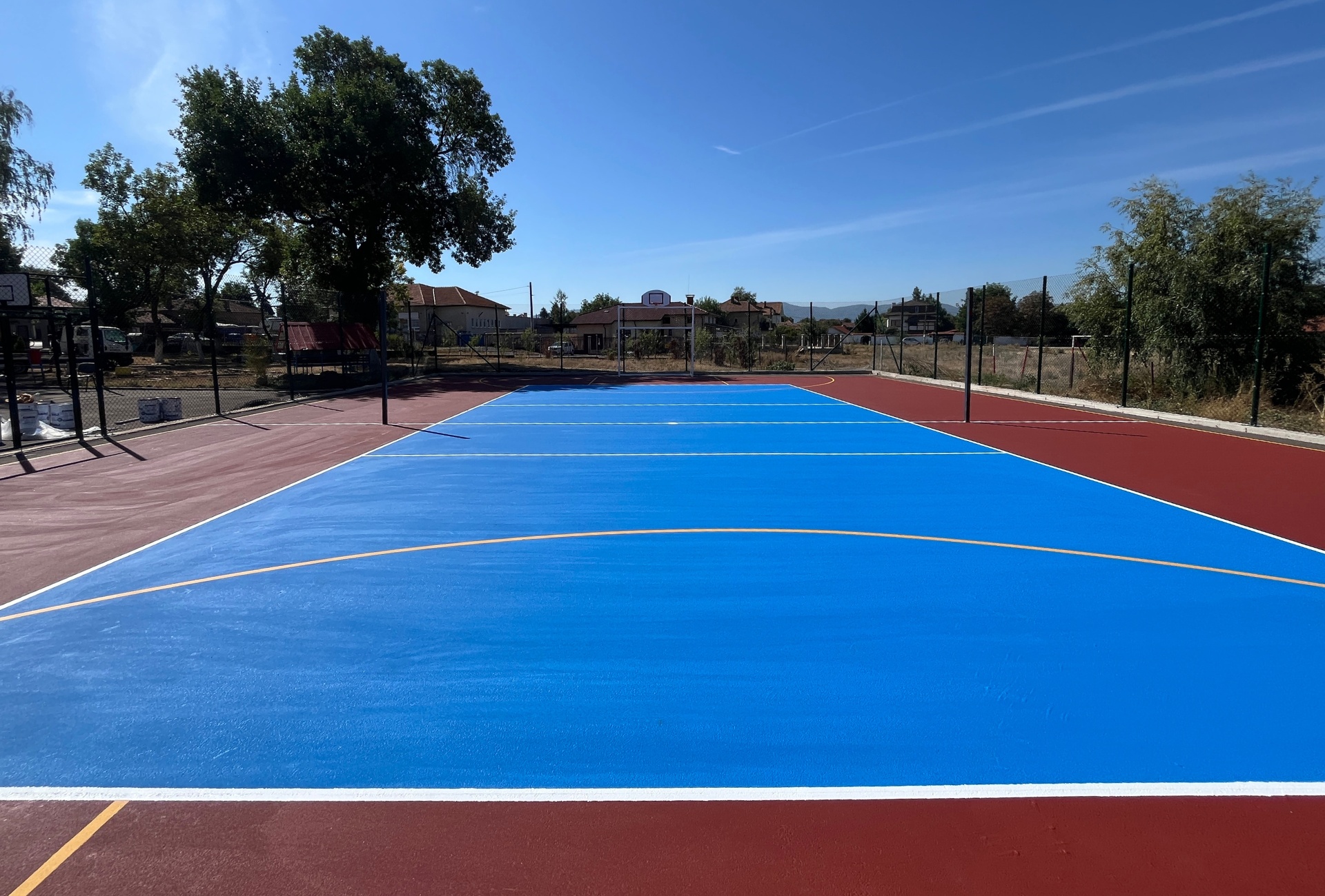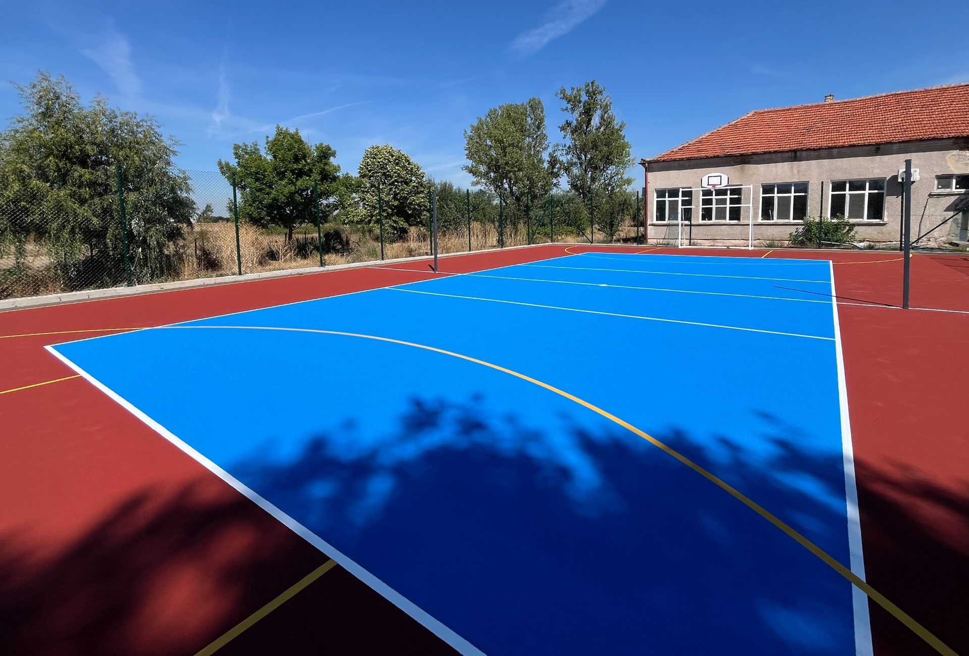 Местоположение: ОУ "Иван Вазов" с. Мусачево, България Дата на изграждане: Септември 2025 г. Вид настилка: Акрил Описание на проекта: Изграждане на мултифункционален спортен терен с акрилна настилка за футбол, баскетбол и волейбол, както и лекоатлетическа писта.