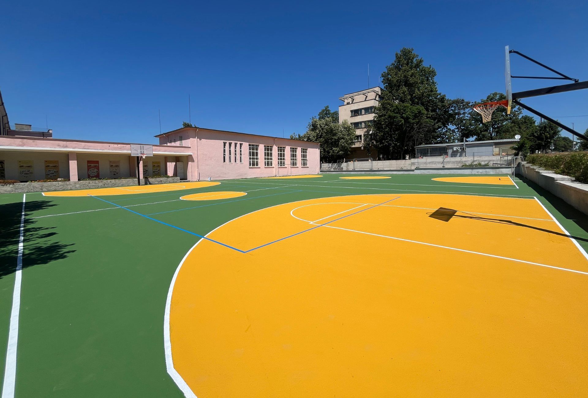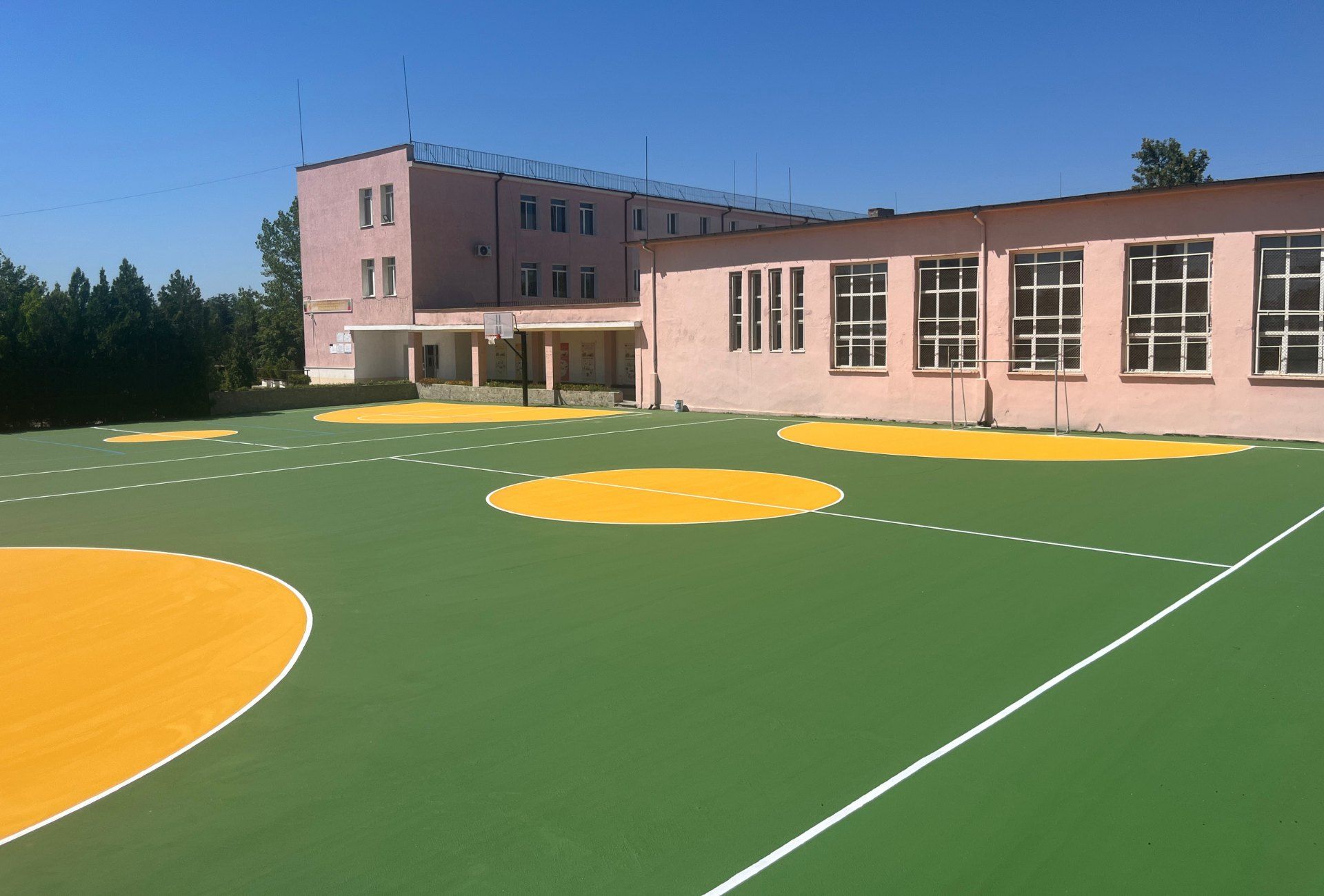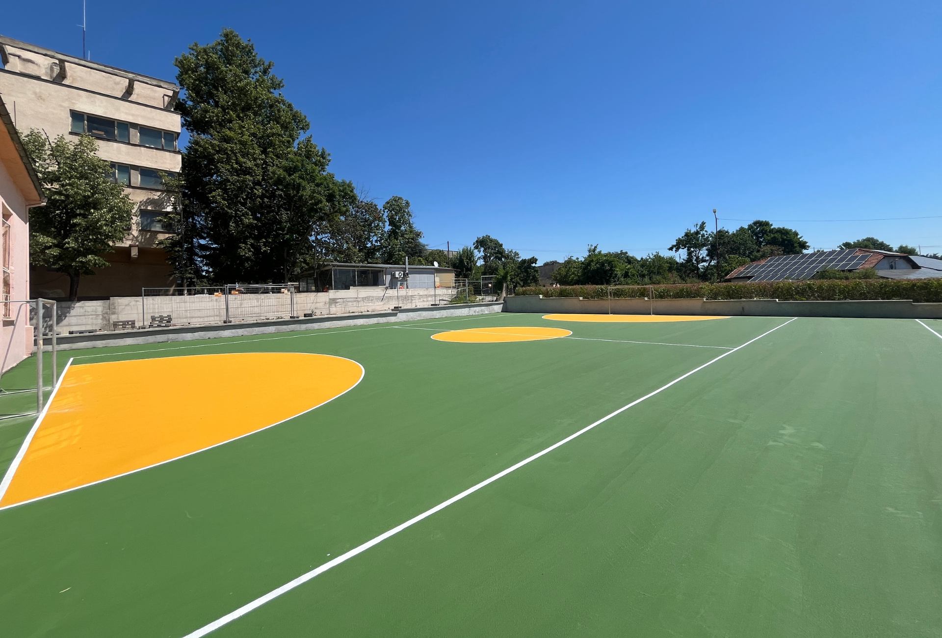 Местоположение: ПГДС "Цар Иван Асен II", гр. Хасково, България Дата на изграждане: Юли 2025 г. Вид настилка: Акрил Описание на проекта: Изграждане на три спортни игрища – за футбол, волейбол и баскетбол, с акрилна настилка с обща площ от 1300 кв.м.