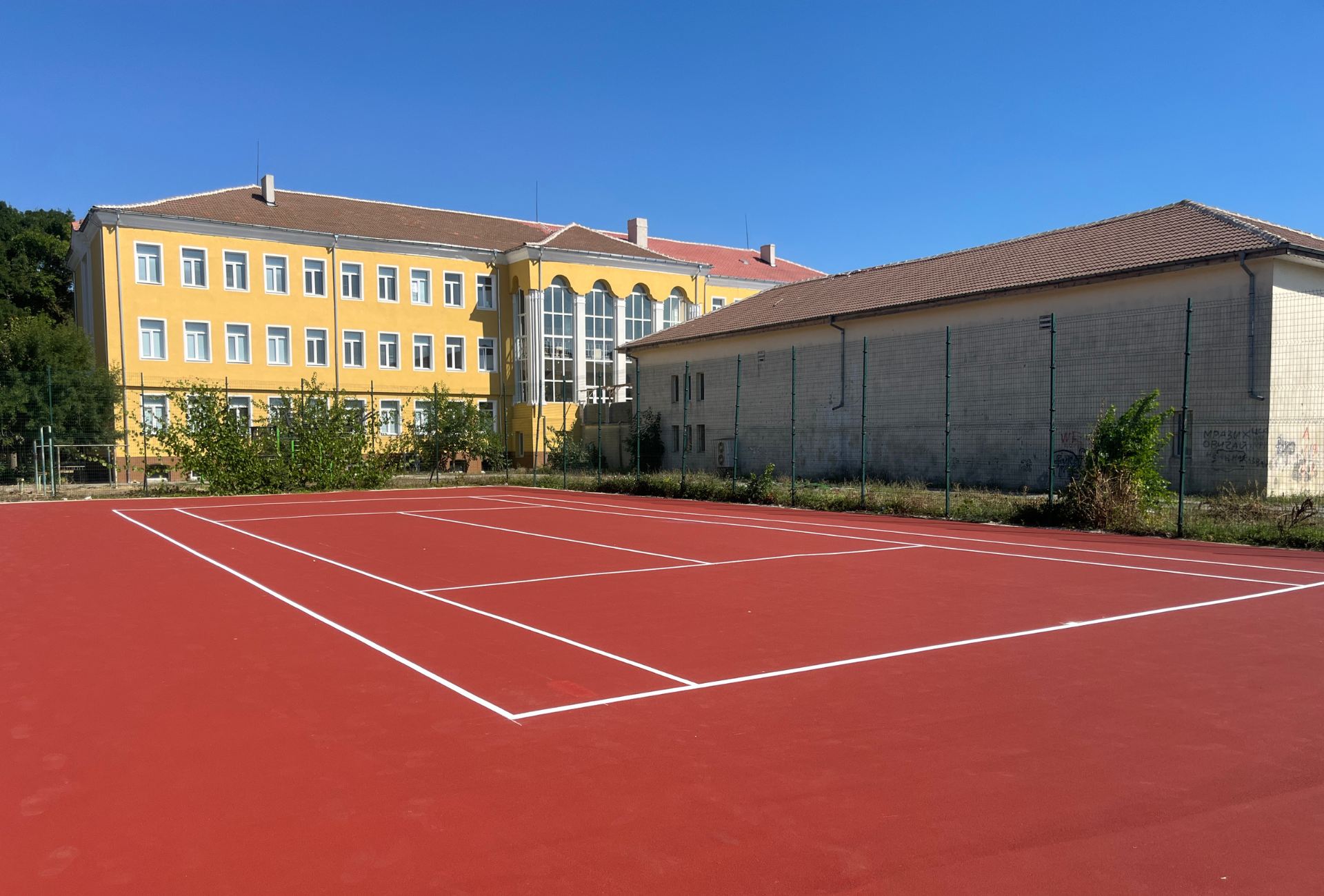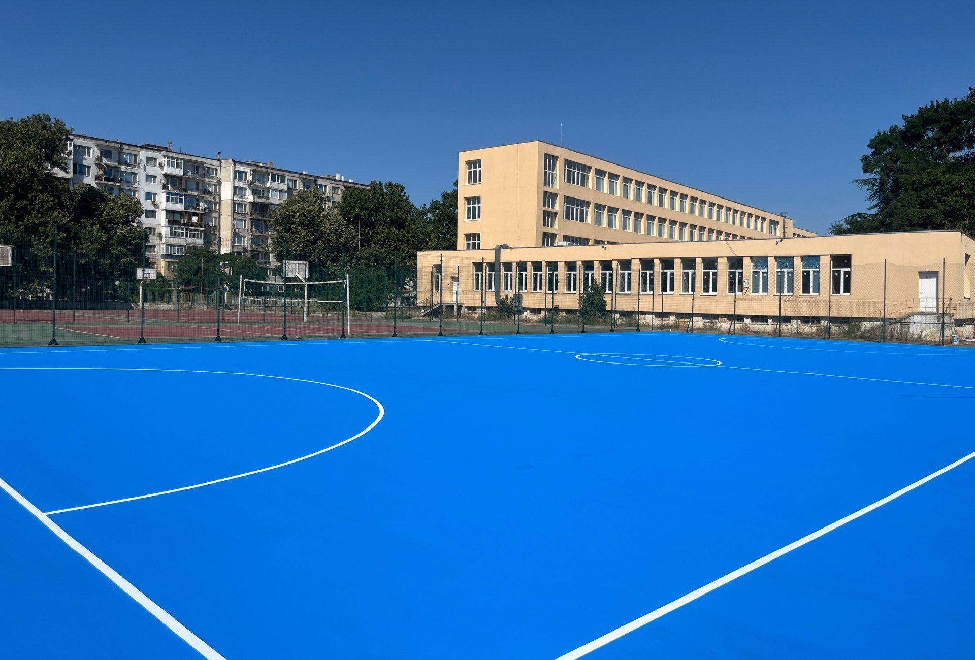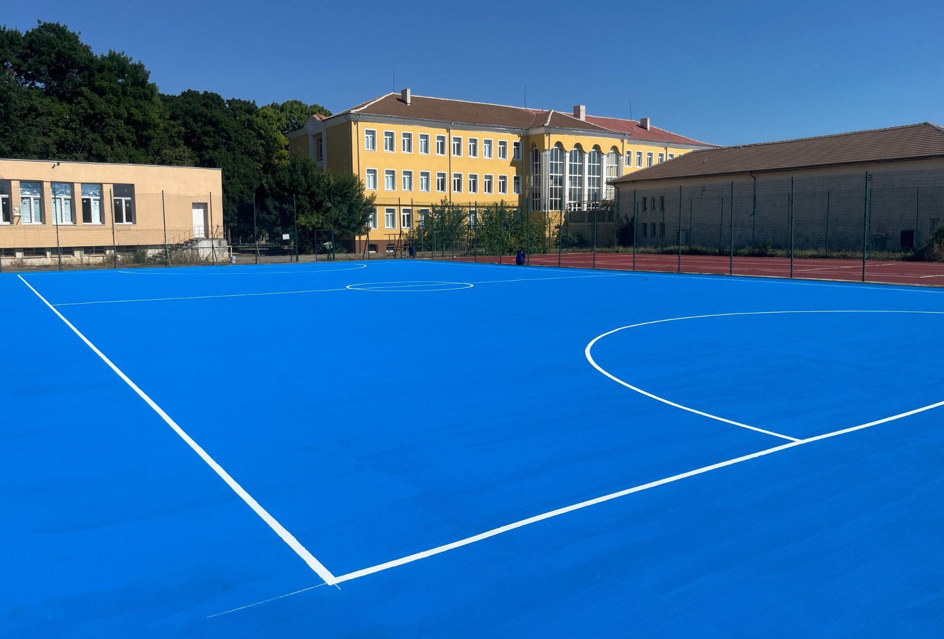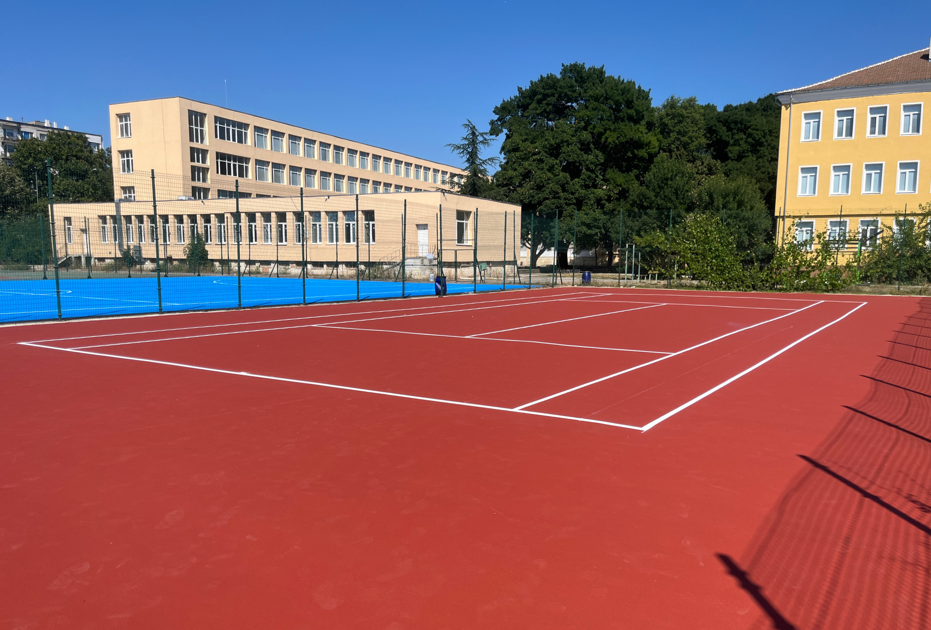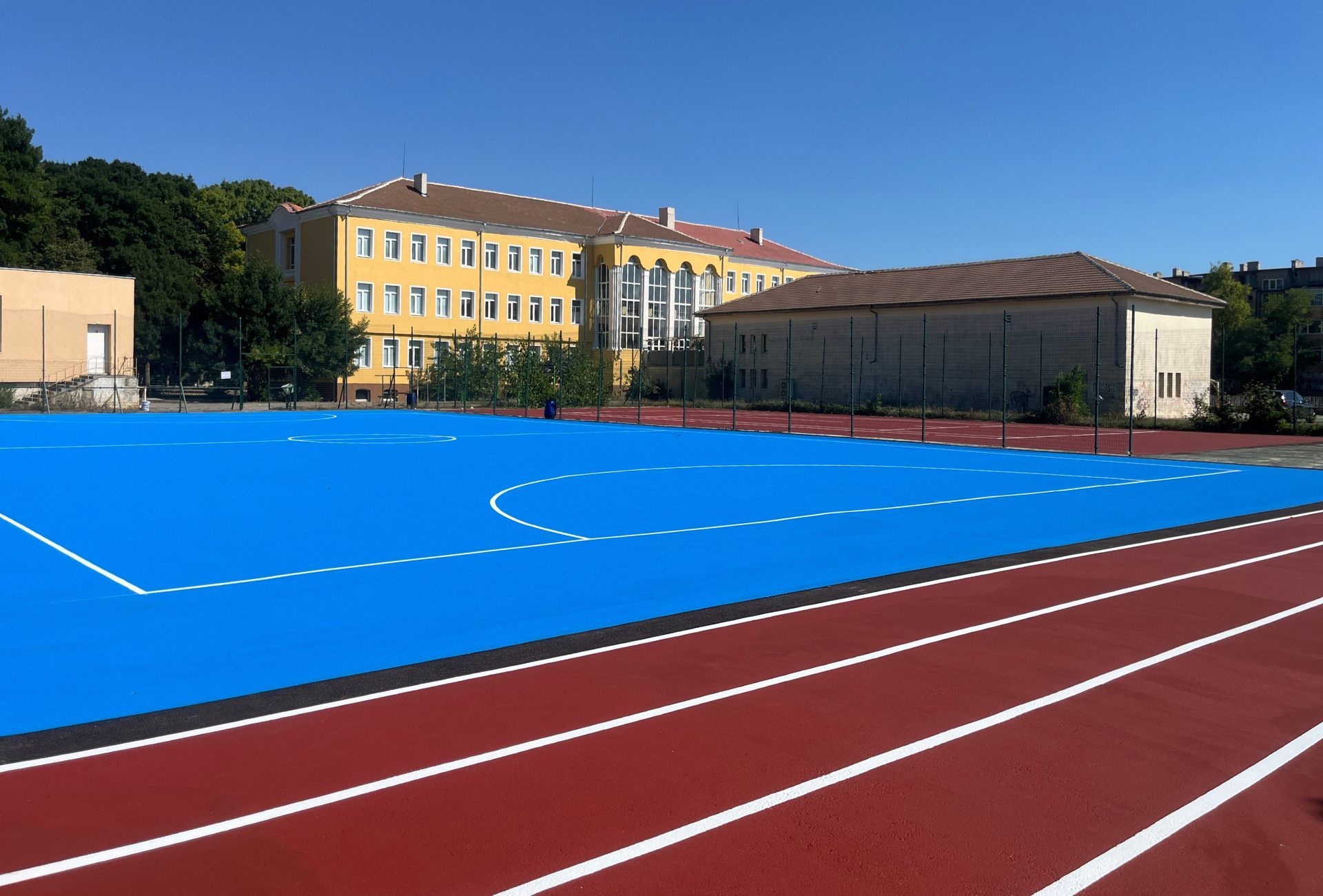 Местоположение: СУ "Стефан Караджа", Каварна, България Дата на изграждане: Септември 2025 г. Вид настилка: Акрил Описание на проекта: Изграждане на три нови спортни площадки с акрилна настилка: футболно игрище, тенис корт и лекоатлетическа писта за бягане, върху напълно обновена асфалтова основа.