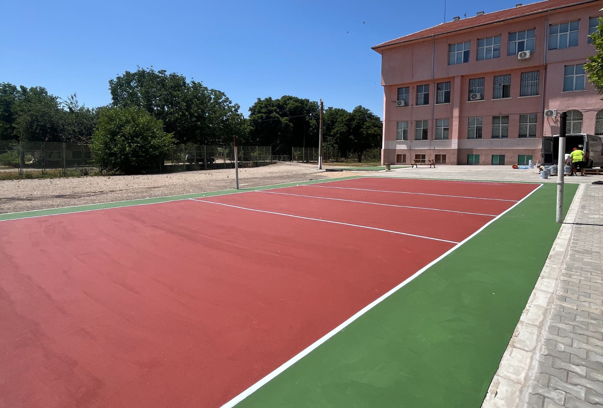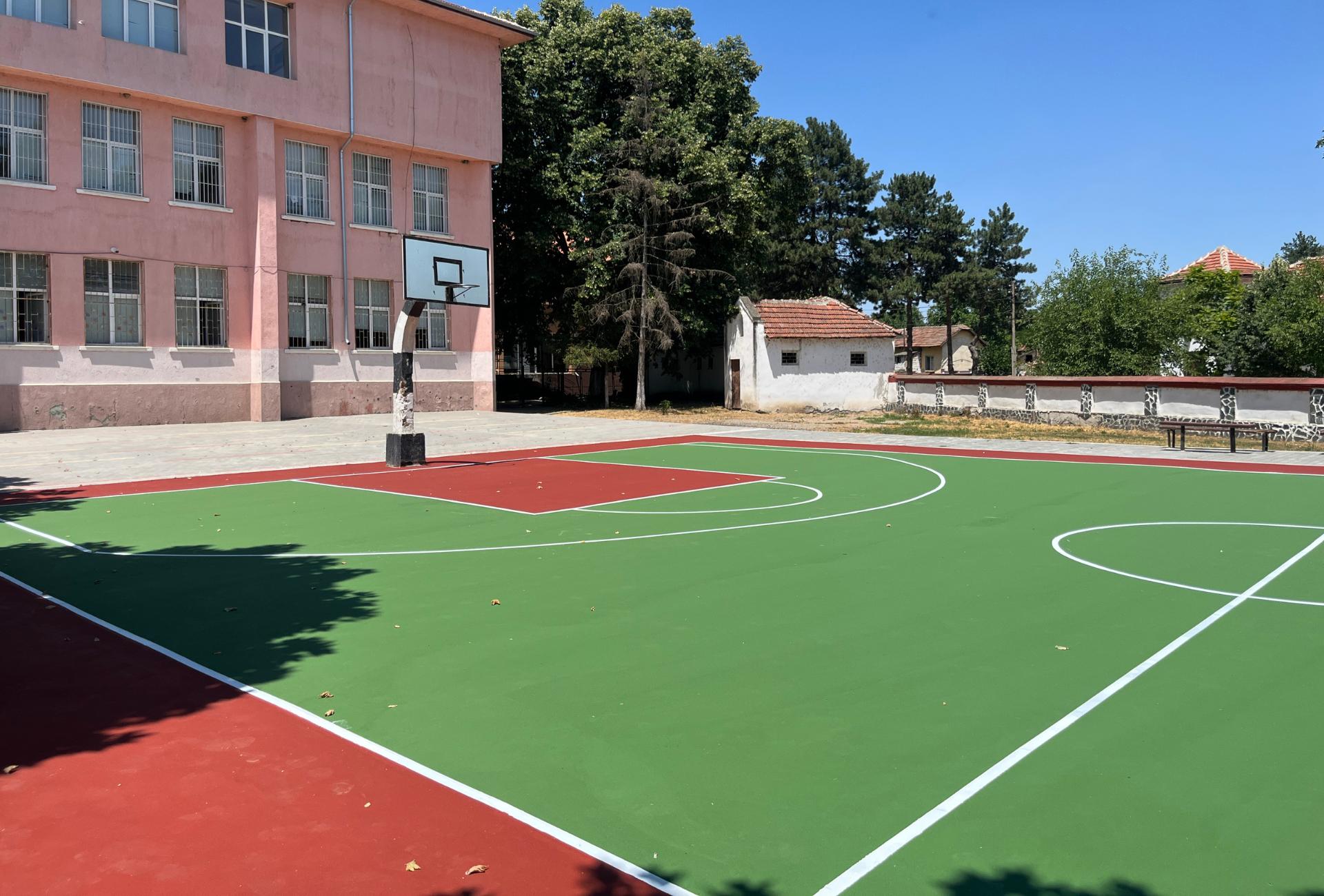 Местоположение: СУ "Св. Св. Кирил и Методий", село Бутан, общ. Козлодуй, България Дата на изграждане: Юни 2025 г. Вид настилка: Акрил Описание на проекта: Изграждане на две спортни игрища – за баскетбол и волейбол, с акрилна настилка с площ от 800 кв.м, положена върху гумена подложка с дебелина 4 мм и обща дебелина на системата от 7 мм, с цел осигуряване на пълен комфорт при игра.