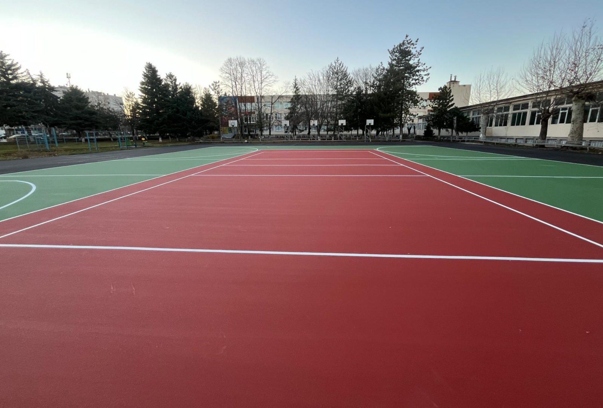 Местоположение: Професионална техническа гимназия "Цар Симеон Велики", гр. Търговище, България Дата на изграждане: Декември 2024 г. Вид настилка: Акрил Описание на проекта: Изграждане на многофункционално акрилно игрище с площ 1000 кв. м, предназначено за два баскетболни корта, волейбол, тенис, федербал, хандбал и футбол.