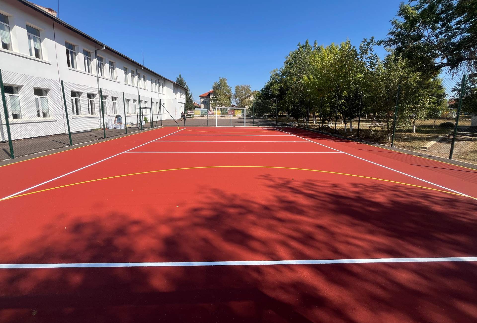 Местоположение: ОУ "Стефан Стефанов", с. Гара Елин Пелин, България Дата на изграждане: Август 2025 г. Вид настилка: Акрил, ударопоглъщаща настилка Описание на проекта: Изграждане на мултифункционално спортно игрище за волейбол, футбол и баскетбол, с акрилна настилка, осигуряваща устойчивост и комфорт при интензивна експлоатация. В рамките на проекта е реализирана и зона за street fitness с ударопоглъщаща настилка, подходяща за тренировки на открито. За обезопасяване на пространството е монтирана оградна конструкция, гарантираща безопасност и контрол на достъпа.