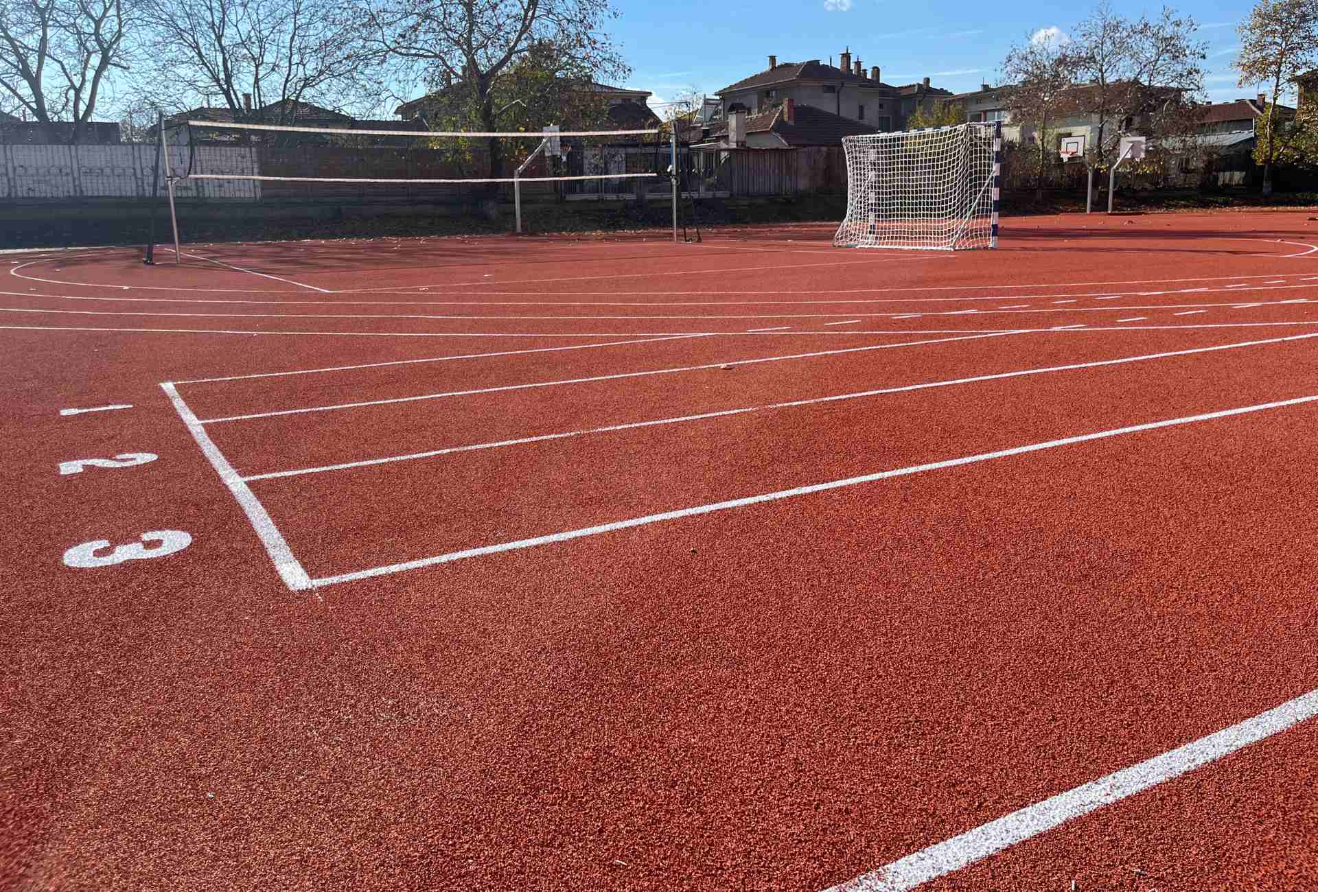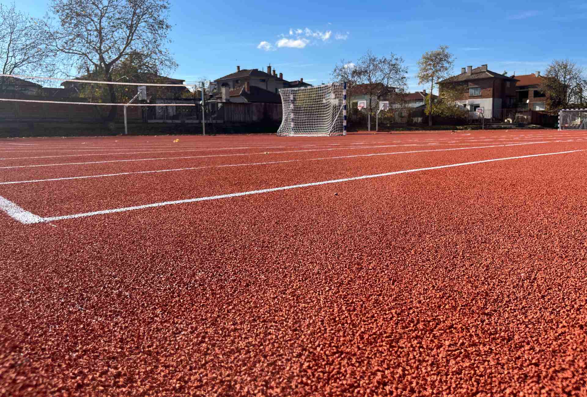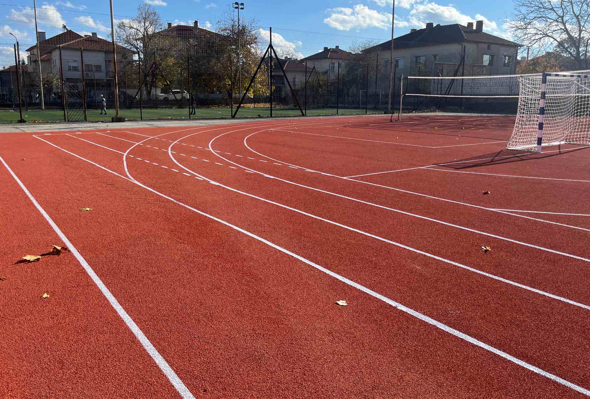 Местоположение: СУ "Неофит Рилски", гр. Харманли, България Дата на изграждане: Ноември 2024 г. Вид настилка: Тартанова спортна настилка, многопластова Описание на проекта: Цялостно изграждане на лекоатлетическа писта, две баскетболни игрища, едно волейболно игрище, едно игрище за хандбал, писта за дълъг скок и пясъчник. Настилката е с дебелина 15 мм и осигурява изключителен комфорт и мекота по време на спорт.
