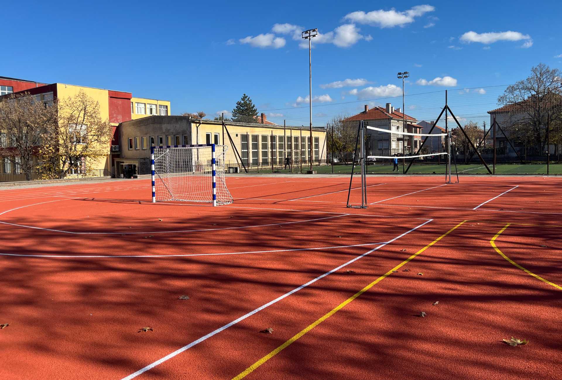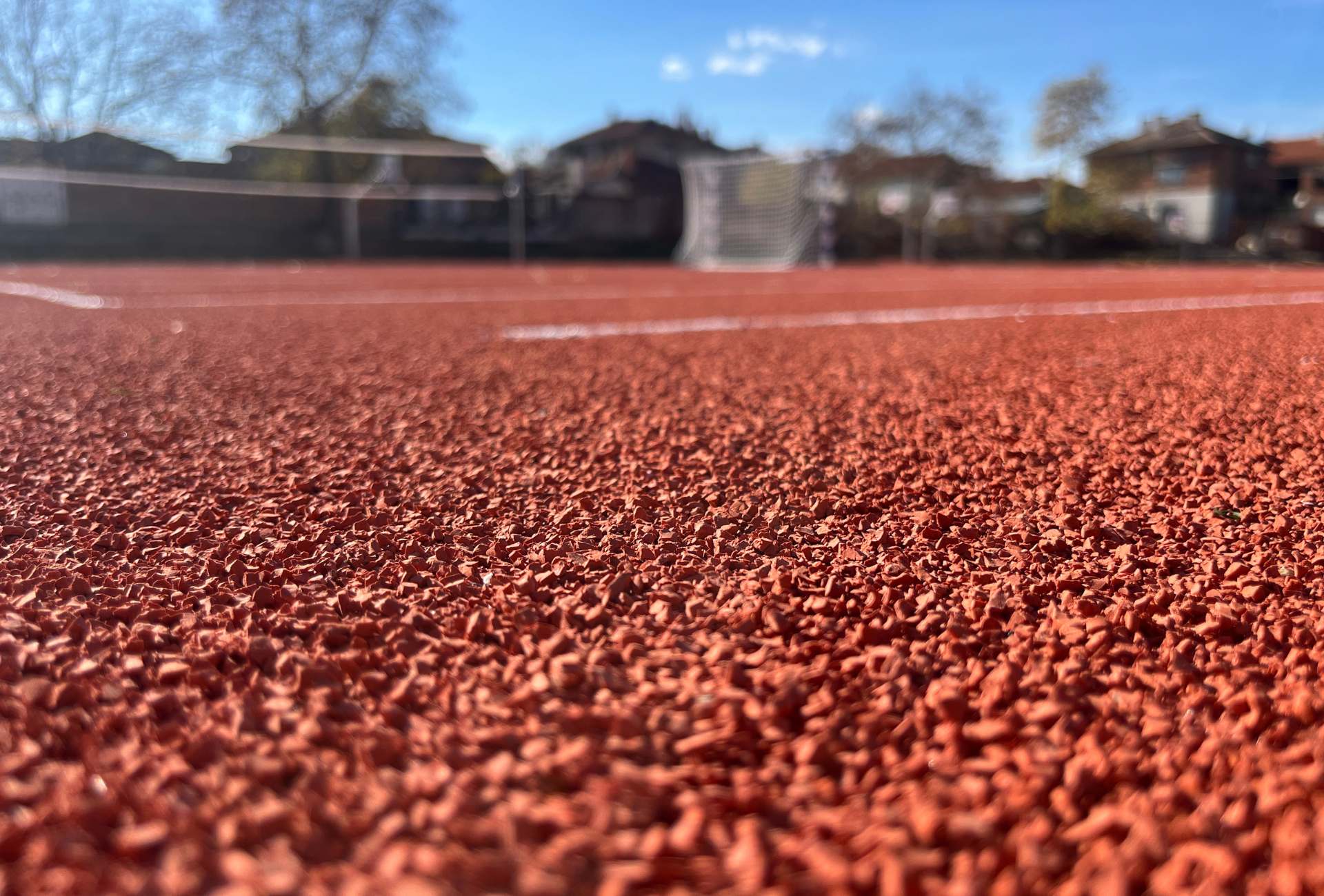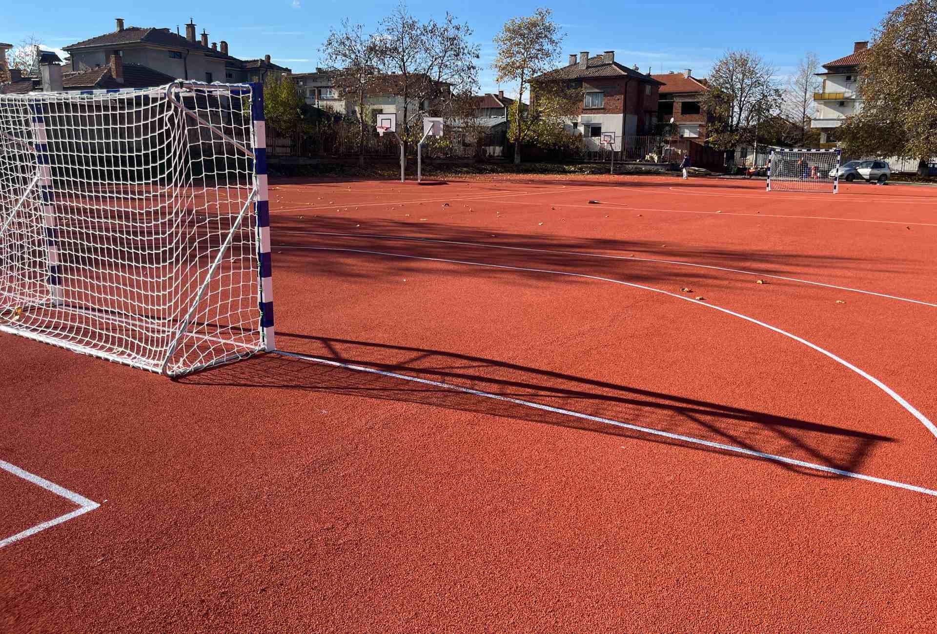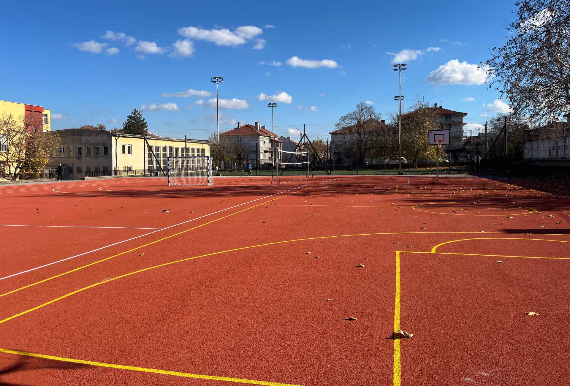 Местоположение: СУ "Неофит Рилски", гр. Харманли, България Дата на изграждане: Ноември 2024 г. Вид настилка: Тартанова спортна настилка, многопластова Описание на проекта: Цялостно изграждане на лекоатлетическа писта, две баскетболни игрища, едно волейболно игрище, едно игрище за хандбал, писта за дълъг скок и пясъчник. Настилката е с дебелина 15 мм и осигурява изключителен комфорт и мекота по време на спорт.